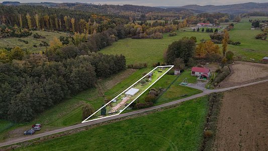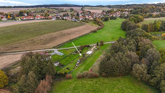 Pozemek se nachází na okraji obce mimo zastavěné území. Díky tomu nabízí naprostý klid a soukromí.