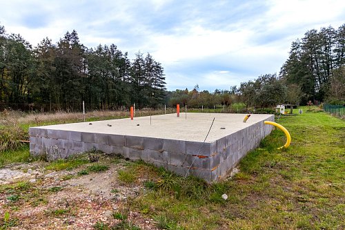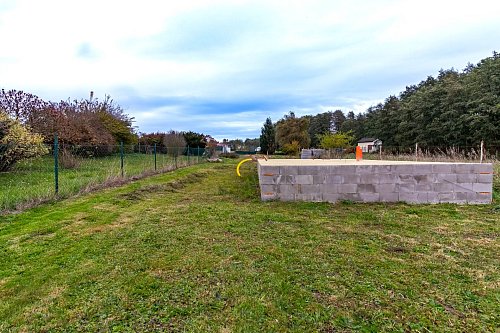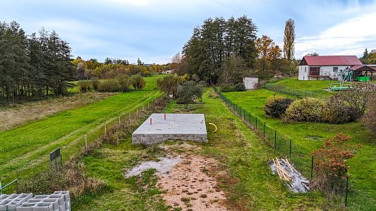 Součástí nabídky je kompletní stavební dokumentace (vč. projektové dokumentace) a vydané stavební povolení, přičemž stavba byla již zahájena a na pozemku se nachází připravené základy. Předpokládá se stavba s nadzemním podlažím a podkrovím o užitné ploše přibližně 100 m2.