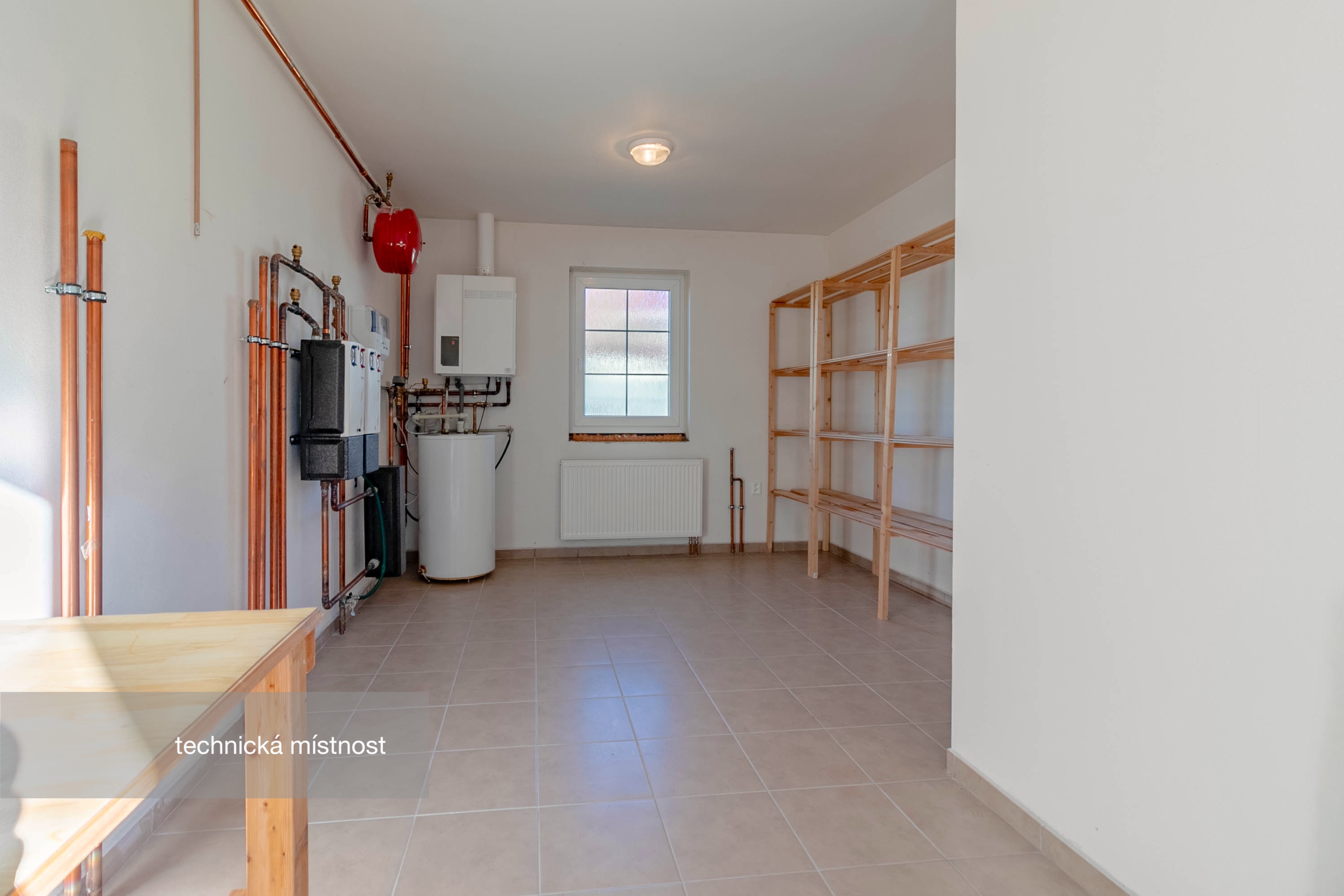 Dům je napojen na obecní vodovod, kanalizaci, elektřinu. Obě části domu mají vlastní plynový kotel na vytápění a ohřev vody, ve starší části doplněné výkonným krbem, který dostatečně vytopí celý dům. Přítomné radiátory jsou tak určeny spíše k přitápění. Novější část má topení podlahové s regulací v každé místnosti, ale i zde je připraven vývod pro případný krb.