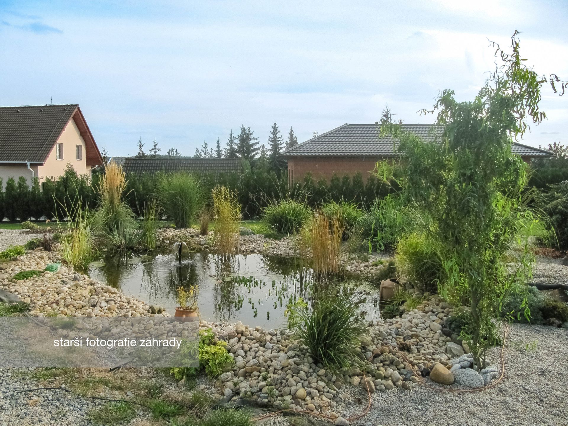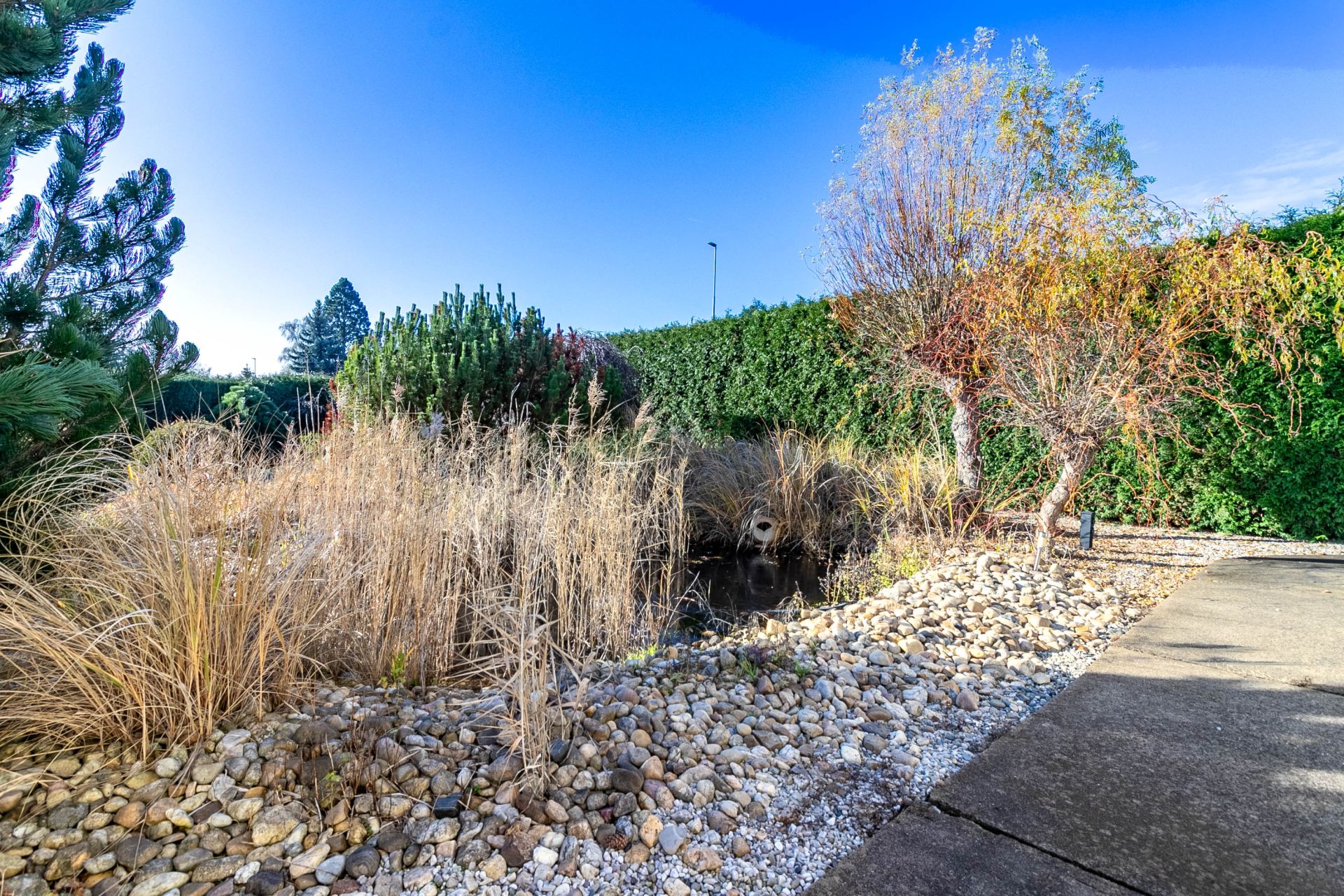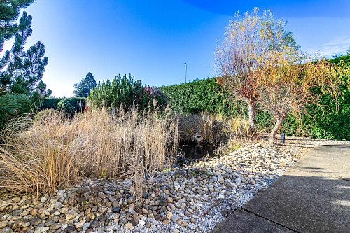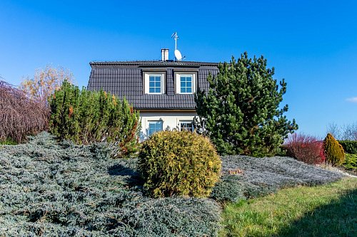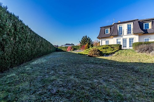 Dům stojí na oploceném pozemku o rozloze 1667 m², zajišťující klid a soukromí. Nachází se zde parkovací plocha za elektrickými pojezdovými vraty, navazuje terasa a zahrada s okrasnými dřevinami a jezírkem, která poskytuje příjemné místo k relaxaci. Na několika místech zahrady je vyvedena voda a elektřina.
